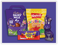 Chocolate Cadbury Products POS Cote d'Or Fry's Green & Black's Milka Toblerone Year Round Gifting Seasonal Valentine's Day Easter Filled Egg Bags Creme Eggs Mini Eggs Novelties Shell Eggs Entry Level Traditional Special Gesture Ultimate Mother's Day Halloween Christmas Striker Program Striker Chocolates Striker Multi-brand NOVELTIES 4246233 Hollow Bunny HI-RES | LOW-RES 4274738 Egg Hunt Pack HI-RES | LOW-RES 4282852 CDM MINI EGGS 360G 14CA HI-RES | LOW-RES 4302314 110g Mini Eggs Bar HI-RES | LOW-RES 4303048 CDM 123G CCE TABLET 16CA HI-RES | LOW-RES 4310209 Easter Favourites HI-RES | LOW-RES MBASS 130G JBABIES CHICKS 10CA HI-RES | LOW-RES